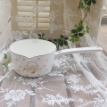 ホーローを焼く時に吊るすため吊るした跡が残る、また焼く際に細かな黒い点がつく場合が