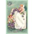 すみれの淡い紫色が優しい輸入ポストカード。