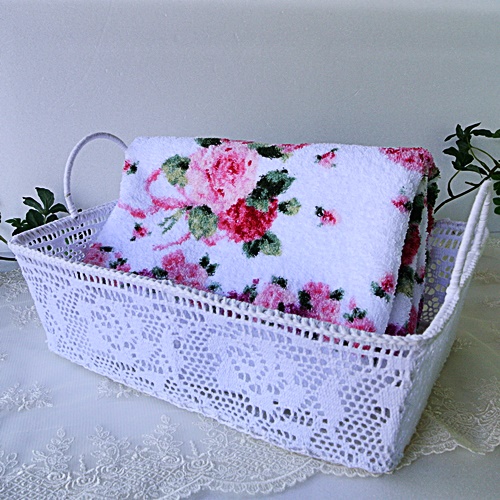 【商品名】ローズモチーフレースかごM ホワイト