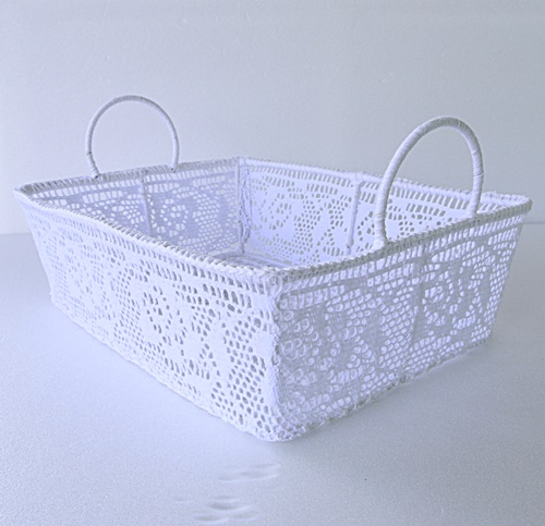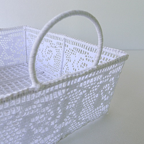 ローズモチーフレースかごM ホワイト